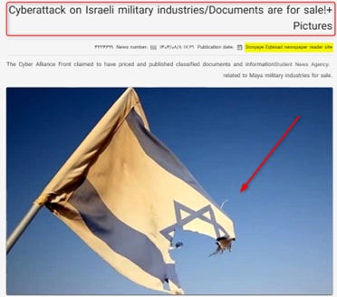 “The Maya defence company hacked; classified Israeli documents offered for sale by the Cyber Isnaad Front”