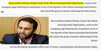 For four years, Pirhadi served as the Head of the Basij Organisation of the Tehran Municipality (ریاست سازمان بسیج شهرداری تهران). The Basij is a paramilitary volunteer force operating under the command structure of the Islamic Revolutionary Guard Corps (IRGC).