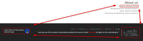 On the same page and in every footer on the site, there is a permanent credit: “طراحی سایت خابری و آسام برکیزی آسام”, or in a free translation: “Design/construction of the news site by ASAM Software Group”.