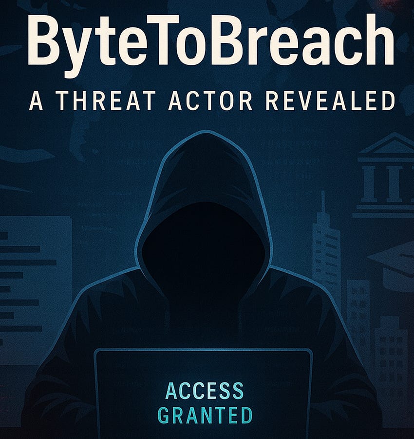 ByteToBreach is a well-known cyber threat actor active, known primarily for carrying out opportunistic but high-impact breaches against financial institutions, airlines, and corporations across multiple regions. His attacks have been documented against Uzbekistan Airways, where he leaked passenger data, including records of U.S. government employees; Seychelles Commercial Bank, where he exfiltrated customer banking data and attempted extortion by decrypting files, and BTS Group Holdings. In this major Thai conglomerate, they stole internal LMS (Learning Management System) data and advertised ongoing network access. Additional chatter links them to breaches of academic institutions in the United States, though attribution in those cases remains less certain.