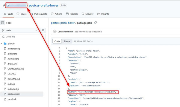 In the picture: direct connection between the name on GitHub to the email address he registered with.