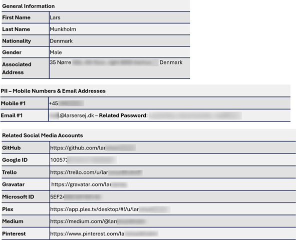 associated with personal social media accounts, password breaches and internet posts that may reveal extra relevant data. It was the case.