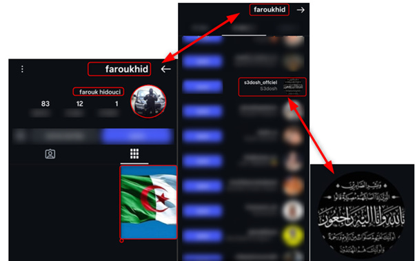 This account contains only one photo, of Algeria’s national flag and follows extremists content, such as the account “s3dosh_officiel”, that publish photos of radical Islam and owns a profile picture with the Arabic text “We belong to god, and to him we shall return”, a very known phrase taken from Quran and mostly used in terms of death and terror.