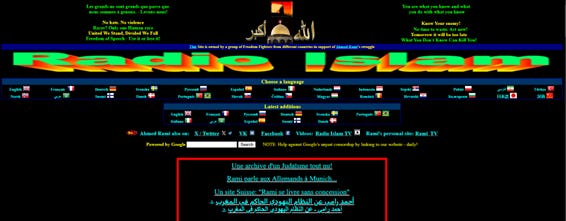 Altough there is no official claim by the owner of Radio Islam, or as it is written in the website - “This Site is owned by a group of Freedom Fighters from different countries in support of Ahmed Rami‘s struggle”, this website runs in the image and insparation of Rami himself.