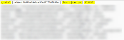 The domain zxc[.]qa was found in association to a few data leaks and revealed the password “zjtxkw2” and “123456”, at least on of them is kind of unique and may be used to reverse search by leaked passwords to find more details. So that is exactly what I did.
