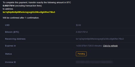 The requested amount is 249$ for lifetime access, paid via BTC to the following address: bc1q54p5m9p08fw4xnqywgt3z3l8cu9gk0fwc7t8u3