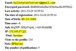 The username was part of a known data leak from a famous hacking group in 2014, revealing a GMAIL address with other details such as DOB, IP address and a user handler in this specific forum.