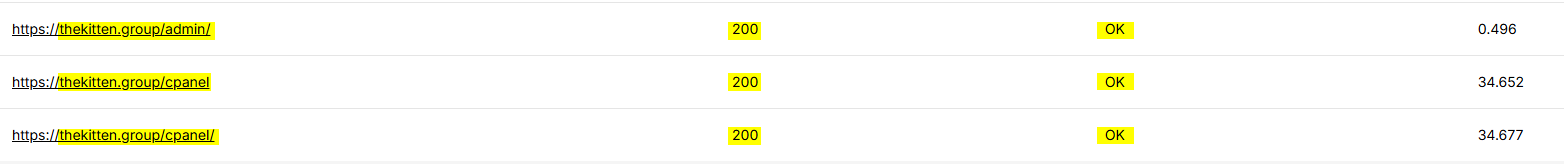 When trying to understand the different pages I can access in this website, I tried URL fuzzing techniques, a thing that revealed two unrestricted, but yet, very sensitive pages with the status code 200 (OK) – admin & cPanel.