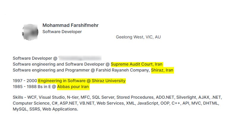 The individual appears to be a web designer and software developer, living in Australia these days, as appeared on his resume.