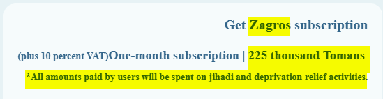 The company frames Zagros as far more than just a technical utility, positioning it as a strategic asset with deep ideological ties to the regime. The developers categorise the service as “The Second Step of the Islamic Revolution and the Social Mission”, with the intent to provide the necessary infrastructure for Iranian users to access sanctioned content so that it can “play a small role in realising the statements of the wise and wise Leader of Iran”. This ideological commitment is also reflected in its financial model, as all funds paid by users for the subscription service are explicitly stated to be spent on “jihad and deprivation relief activities”, linking the service’s commercial revenue directly to the IRGC’s funding and social initiatives.