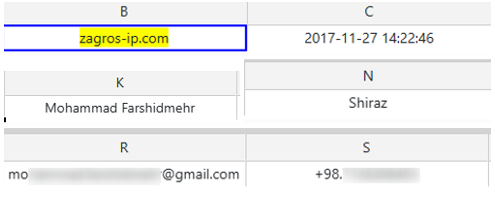 The domain zagros-ip[.]com was part of a data leak from 2018, and revealed a person under the name Mohammad Farshidmehr, an Iranian citizen from Shiraz city.